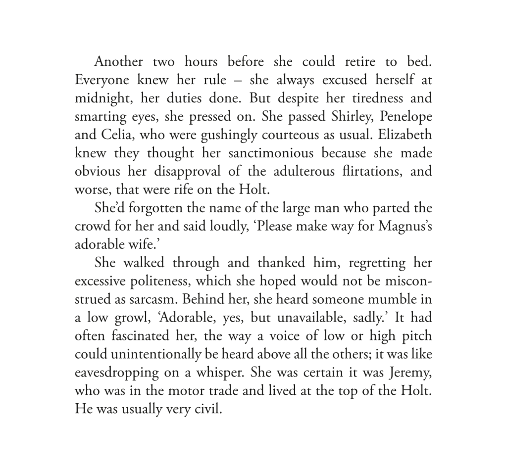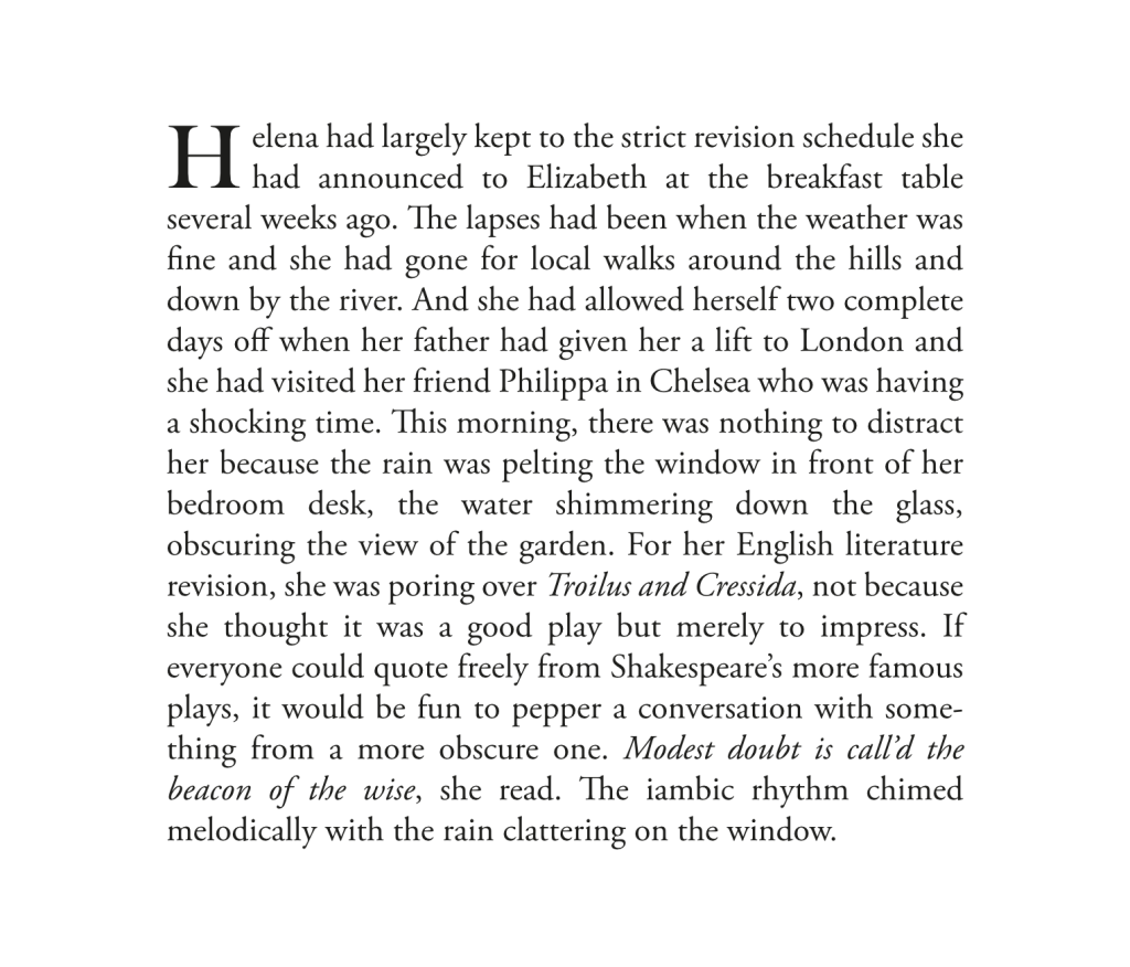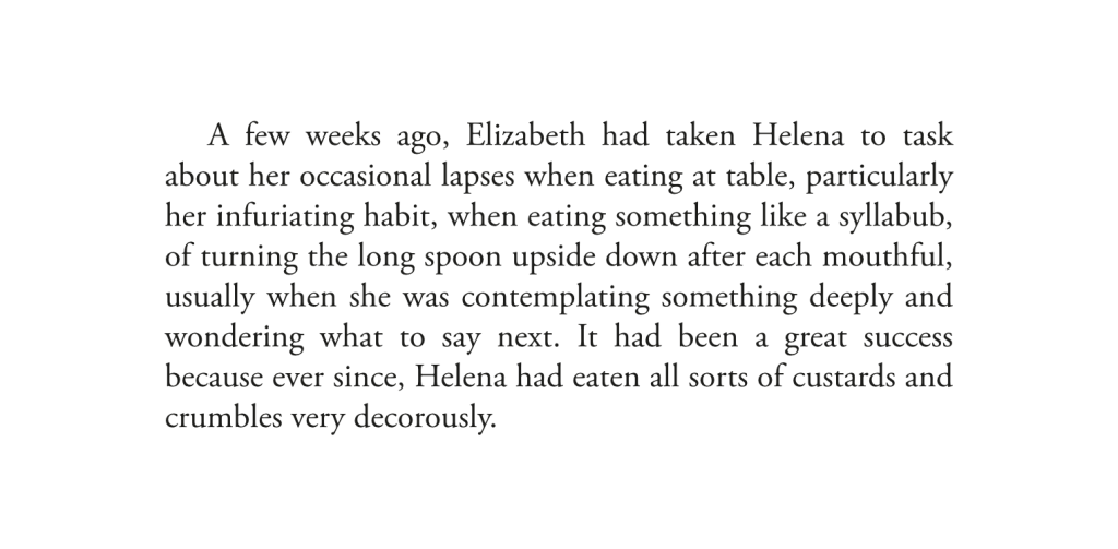 ‘I thought I’d leave you to sleep in,’ Helena said. ‘I heard all the shouting last night. It sounded like quite a row, even from the other end of the house.’